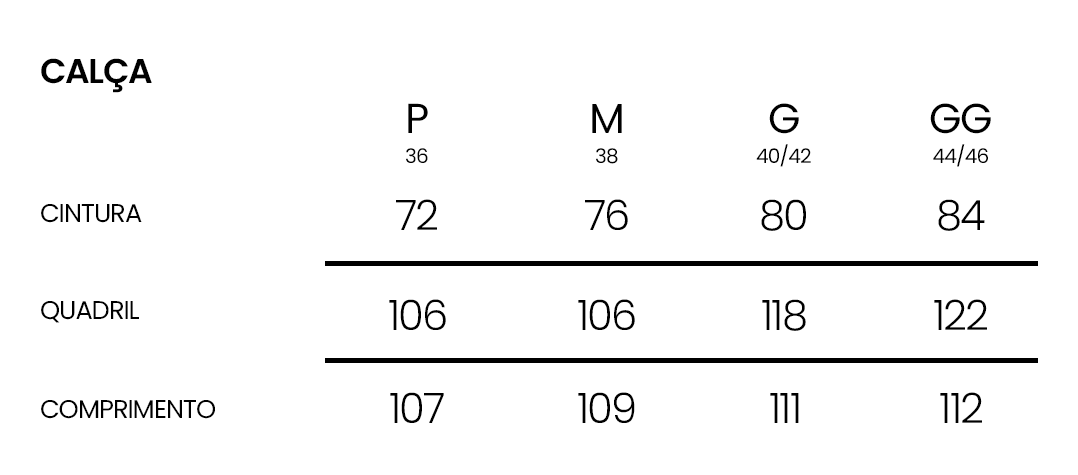 P.S.: A medida se refere a circunferência total da peça em centímetros.